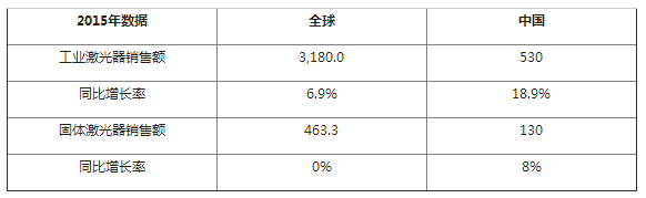 固體激光器市場及發(fā)展趨勢时间:2017-06-22 作者:陳光【原创】 據(jù)Unlimited Strategy的報告,全球工業(yè)級激光器在2015年的銷售總額達(dá)到3,180百萬美元,比2014年增長了6.9%(表1)。在全球經(jīng)濟(jì)持續(xù)放緩,特別是主要新興市場表現(xiàn)疲軟,西方經(jīng)濟(jì)體情況不樂觀的情況下,全球工業(yè)激光能逆轉(zhuǎn)制造業(yè)的頹勢,實現(xiàn)正增長。其中,固體激光器在2015年的銷售額為463.3百萬美元,與2014年基本持平,預(yù)測未來固體激光器將穩(wěn)步持續(xù)提高。 表1:2015年全球及中國工業(yè)激光器與固體激光器銷售情況(百萬美元)